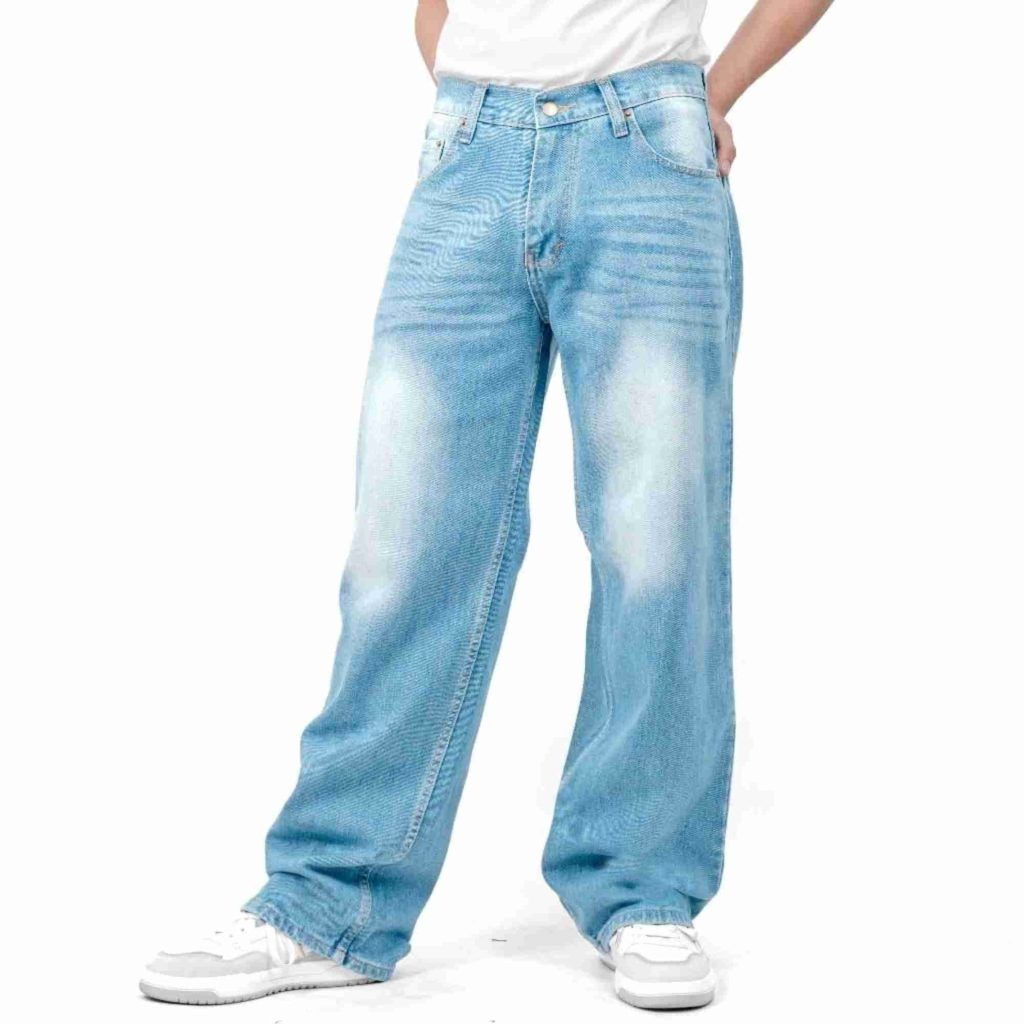 Baggy Jeans Gombrong Pria Celana Panjang Jeans Skena Biru Whisker Retro Premium