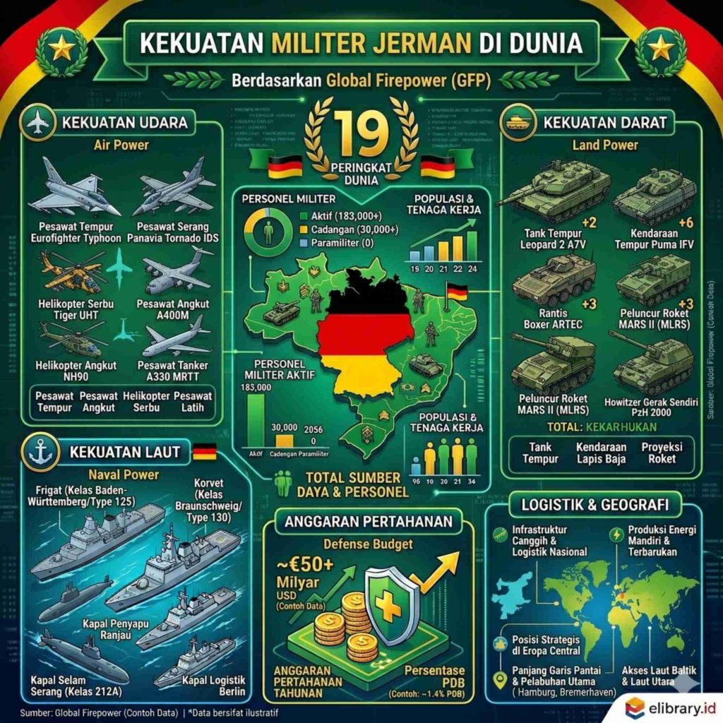 Sebaliknya, Jerman melompat dari peringkat 19 pada 2024 ke 12 pada 2026 berkat kebijakan Zeitenwende yang menggelontorkan dana €100 miliar untuk modernisasi Bundeswehr.