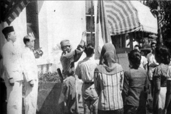 Pada pagi hari itu, di kediamannya di Jalan Pegangsaan Timur No. 56 Jakarta, Soekarno membacakan teks proklamasi yang ditandatanganinya bersama Mohammad Hatta.