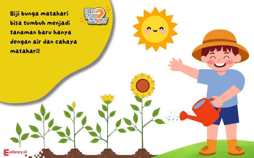 Biji membutuhkan air, tanah, dan cahaya untuk tumbuh menjadi tumbuhan baru.