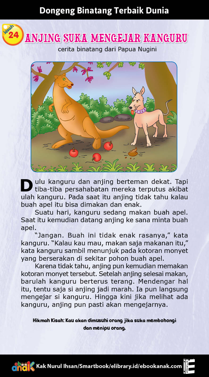 “Jangan. Buah ini tidak enak rasanya,” kata kanguru berbohong.