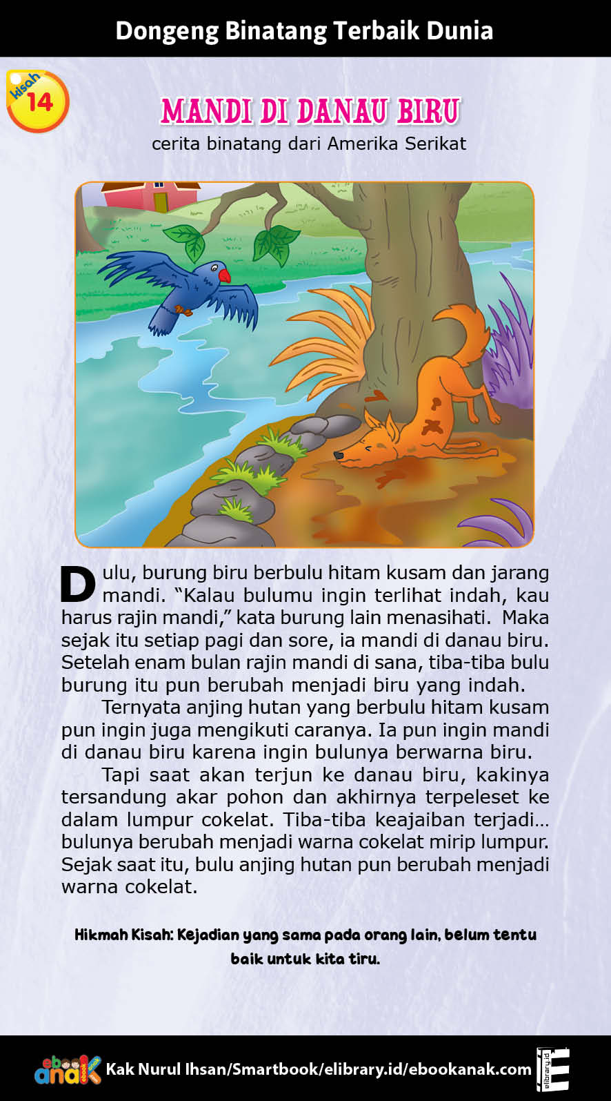 “Kalau bulumu ingin terlihat indah, kau harus rajin mandi,” kata burung lain menasihati.