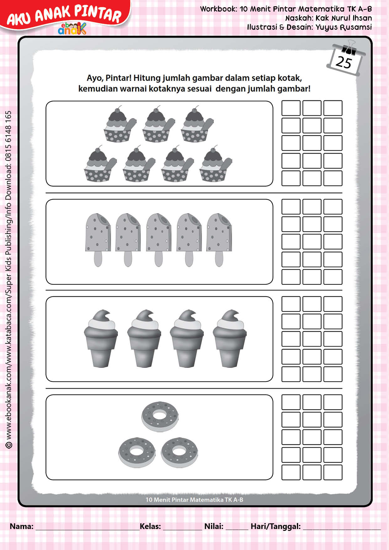 Menghitung dan Mewarnai Kotak Sesuai Jumlah Gambar