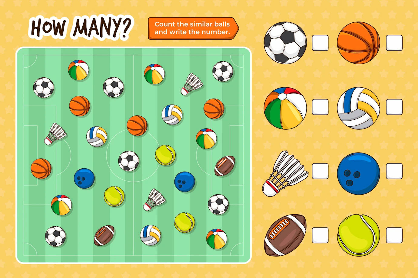 Lalu kalian hitung ada berapa banyak jumlah bola-bola tersebut!