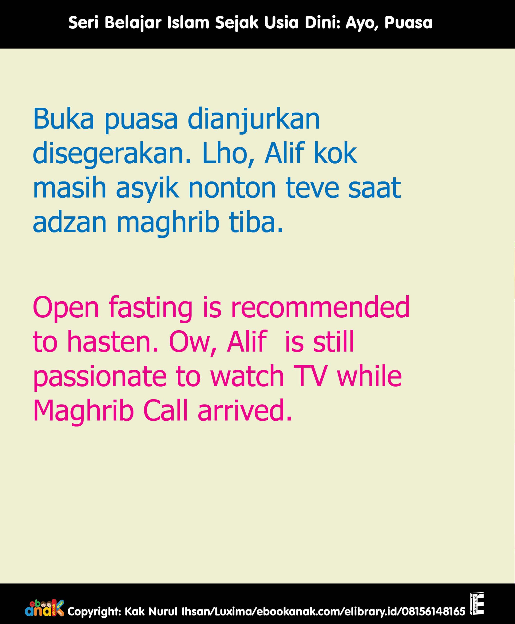 Lho, Alif kok masih asyik nonton teve saat adzan maghrib tiba.