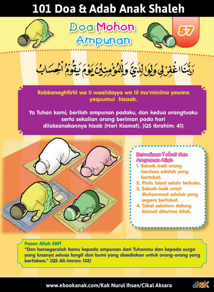 Sumber dan kontributor Judul Buku: 101 Doa dan Adab Anak Shaleh Naskah: Kak Nurul Ihsan Ilustrasi: Rachman Penerbit: Cikal Aksara