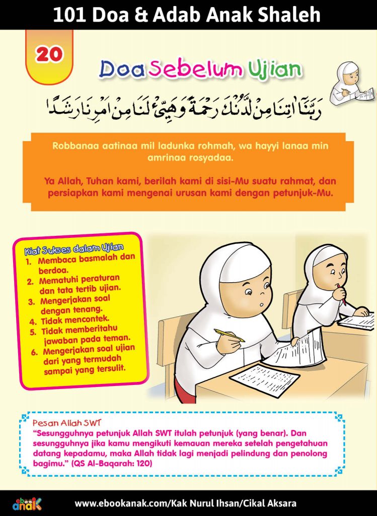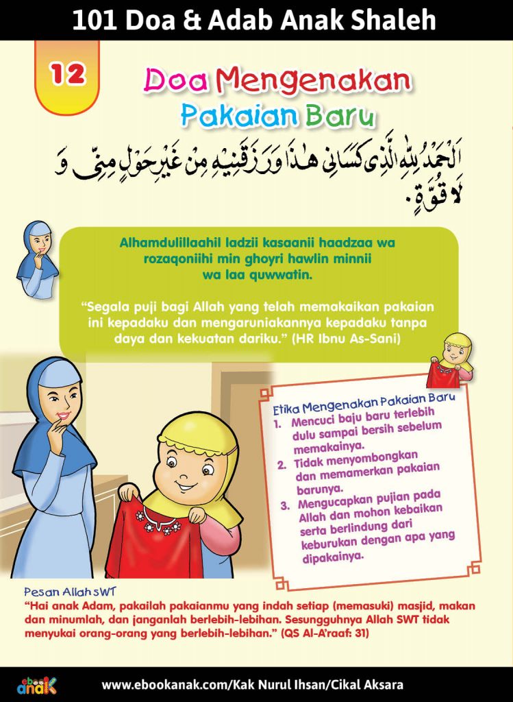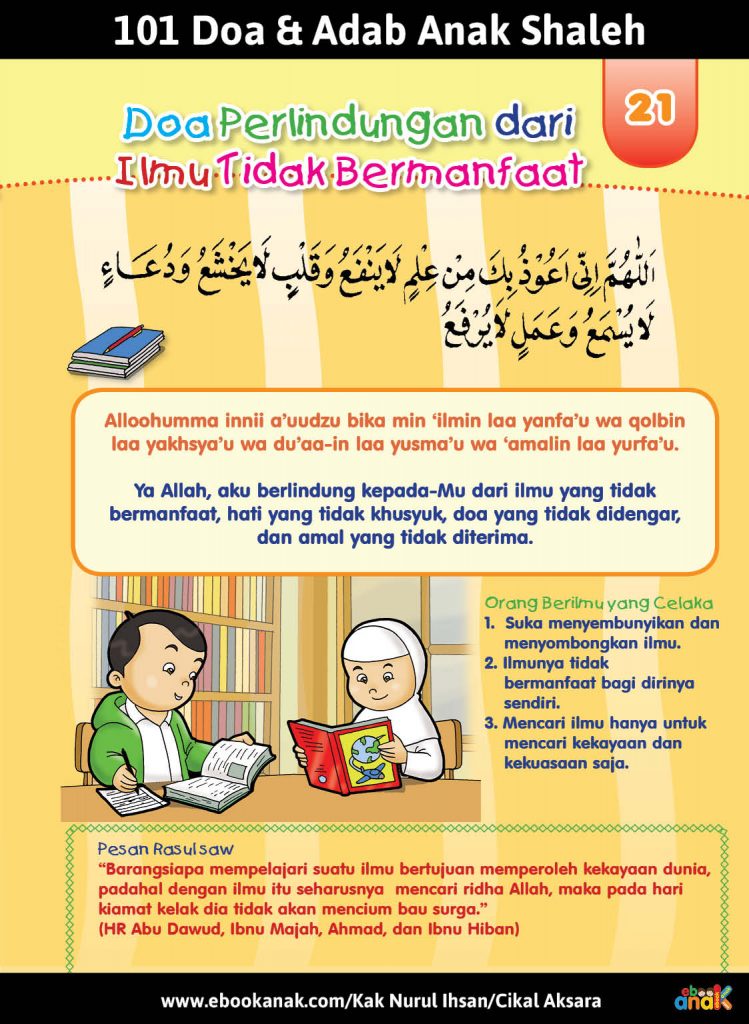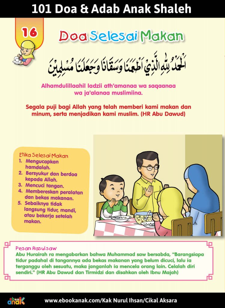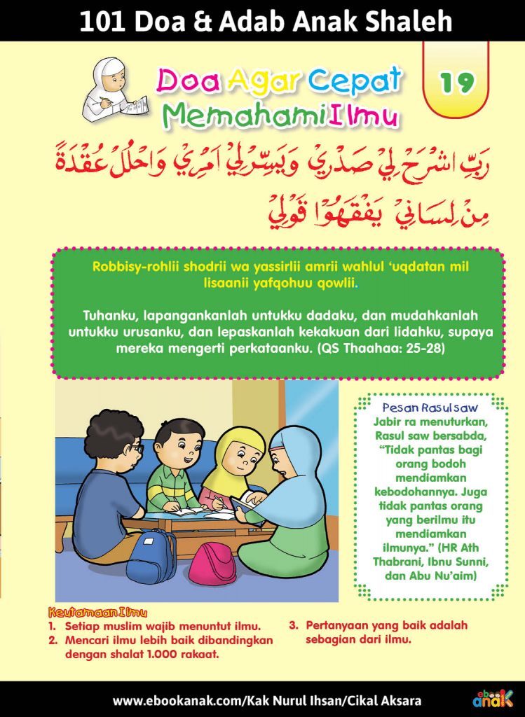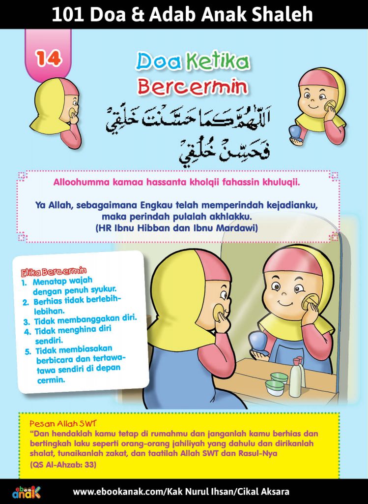 Sumber dan kontributor Judul Buku: 101 Doa dan Adab Anak Shaleh Naskah: Kak Nurul Ihsan Ilustrasi: Rachman Penerbit: Cikal Aksara