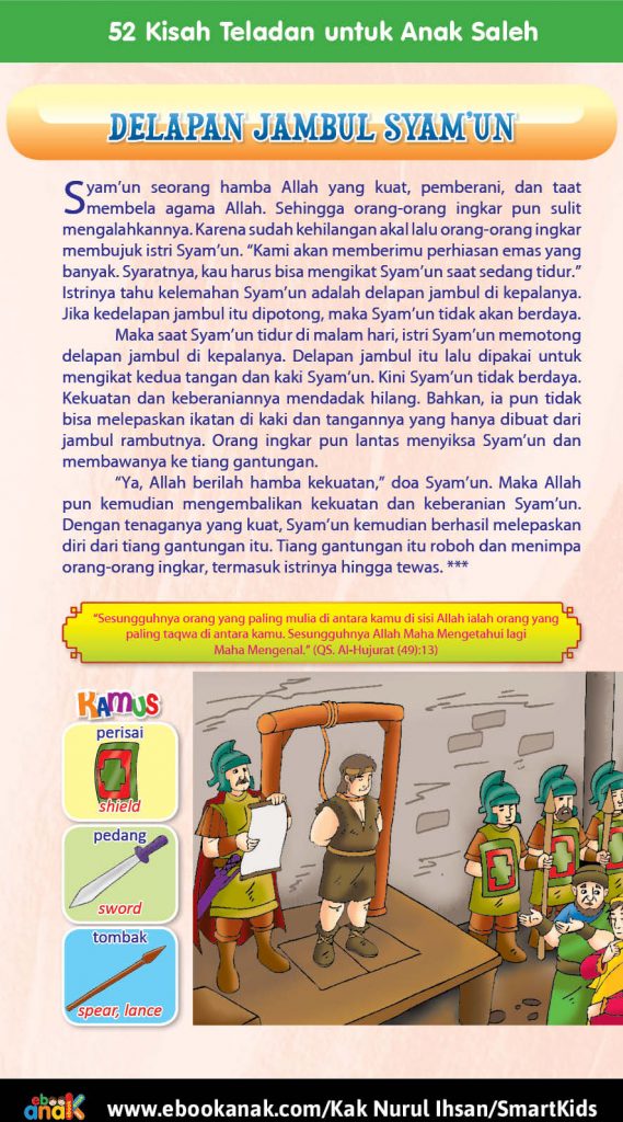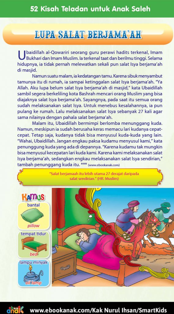 Sumber dan Kontributor Judul: 52 Kisah Teladan Anak Saleh Penulis: Kak Nurul Ihsan Ilustrasi: Uci Ahmad Sanusi Penerbit: Smartbook (Cahaya Ilmu)
