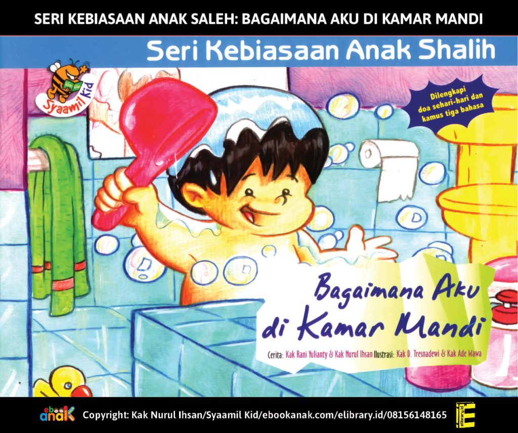 Lalalala…. Eh iya lupa, tidak boleh menyanyi di kamar mandi. Juga tidak boleh membaca istighfar. Kamar mandi itu untuk mandi dan membersihkan kotoran. Banyak lho, adab-adab di kamar mandi itu. Kalau mau tahu lebih banyak lagi, yuk kita baca. 4 Judul Seri Kebiasaan Anak Saleh Bagaimana Aku Makan Bagaimana Aku Berpakaian Bagaimana Aku Berteman Bagaimana