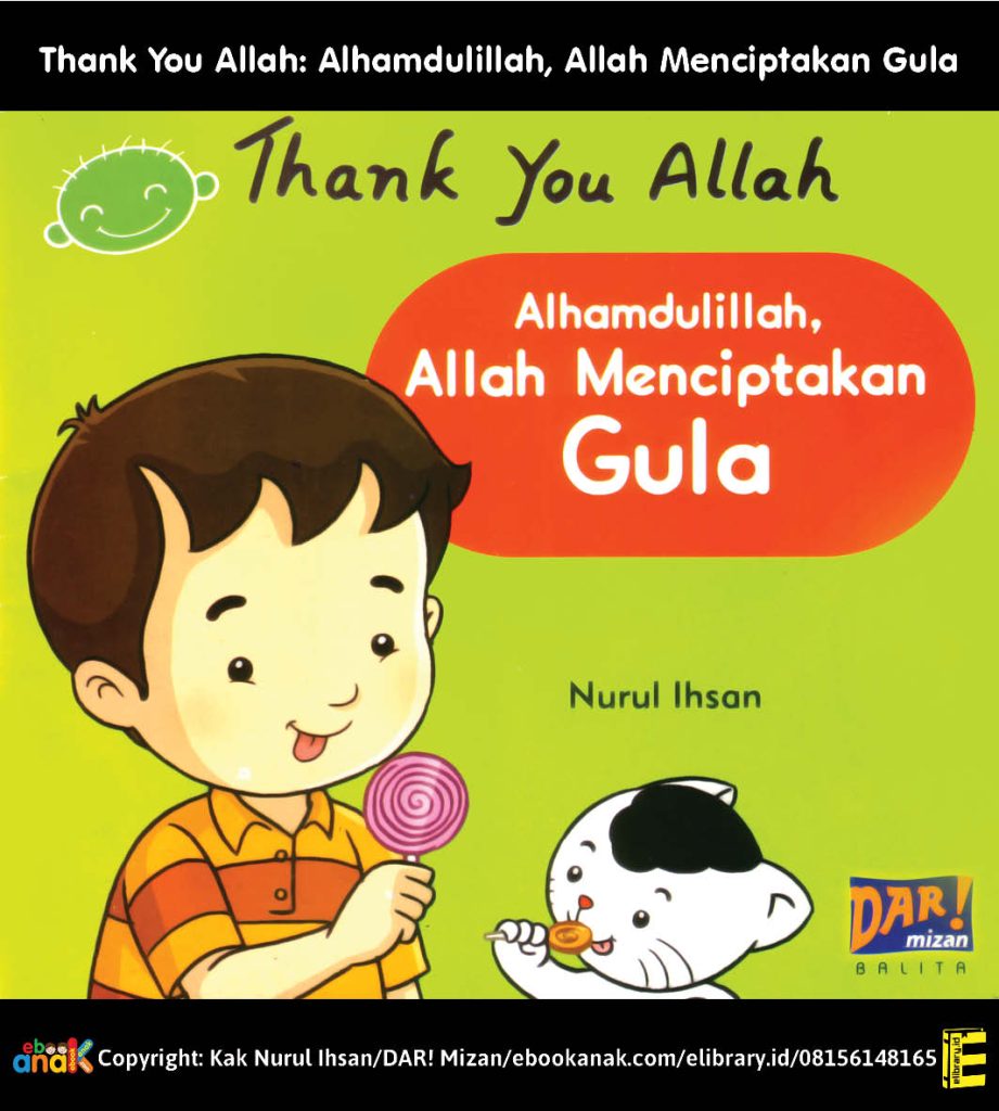 Terima kasih, ya Allah, Engkau telah menciptakan gula. Gula sangat berguna bagi manusia. Anak tidak akan kewalahan menerima informasi sebanyak apapun asal tidak dipaksakan. Membiasakan balita kita dengan kata-kata islami, seperti “alhamdulillah” adalah penting, baik untuk perkembangan bahasa maupun kecerdasan spiritualnya. SQ (Spritiual Quotient) atau yang kita kenal dengan kecerdasan spritual, terdiri atas pengetahuan bahwa diri adalah bagian