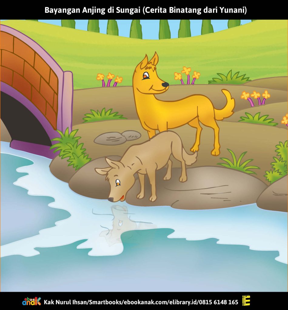 Ada seekor anak anjing yang sok tahu dan merasa dirinya sudah pintar. Suatu hari, ia berjalan ke sungai yang belum pernah ia kunjungi. “Baru pertama kali ini aku melihat sungai,” gumamnya kagum. Tiba-tiba ia kaget. Di dalam sungai itu, ia melihat ada seekor anak anjing lain yang mirip dirinya. “Wah, aku harus memberi tahu dulu