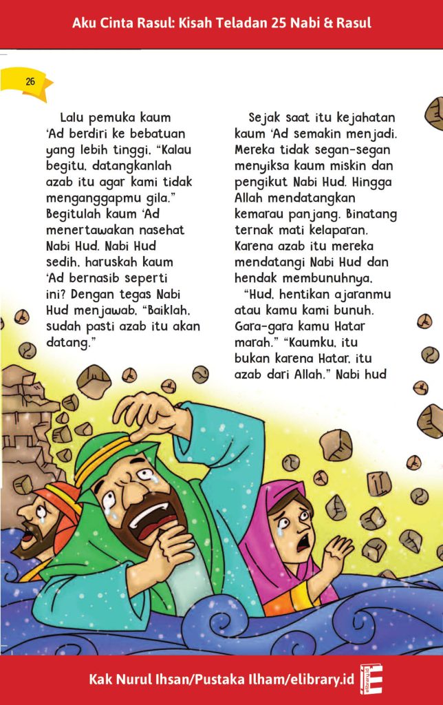 “Kaumku itu bukan karena Hatar. Itu azab dari Allah.” jelas Nabi Hud. Namun kaum ‘Ad tidak percaya. Nabi Hud sedih, karena azab Allah pasti datang. Lalu seketika itu langit menjadi gelap gulita. Allah kembali menurunkan azab. Sumber dan Kontributor Judul Buku: Aku Cinta Rasul: Kisah Teladan 25 Nabi & Rasul Penulis: Kak Nurul Ihsan Ilustrasi: […]