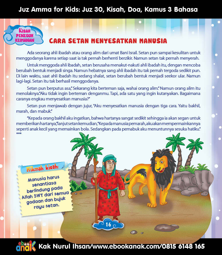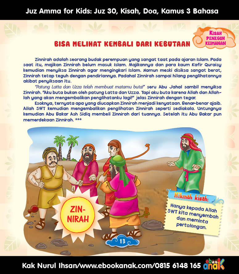 Sumber dan Kontributor Judul: Juz Amma for Kids (Arab-Latin-Indonesia-Inggris) Naskah: Kak Nurul Ihsan & Abu Azka Ilustrasi: Uci Ahmad Sanusi, dkk Penerbit: Ruang Kata