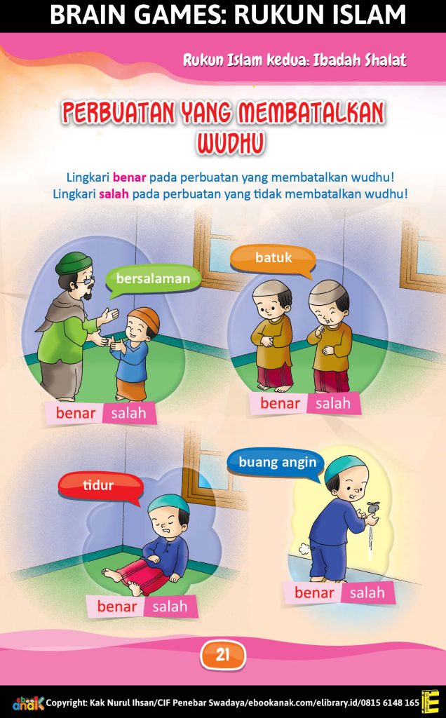 Zakat adalah sebagian harta yang wajib diberikan kepada orang-orang tertentu dengan syarat-syarat yang telah ditentukan. Ada 5 benda yang wajib dizakatkan. Coba kamu tebalkan nama-nama orang yang berhak menerima zakat. Klik cover ebooknya untuk mengerjakan ebook interaktif uji literasi Brain Games Rukun Islam! Buku Seri Brain Games Rukun Islam ini adalah sarana yang tepat dan […]